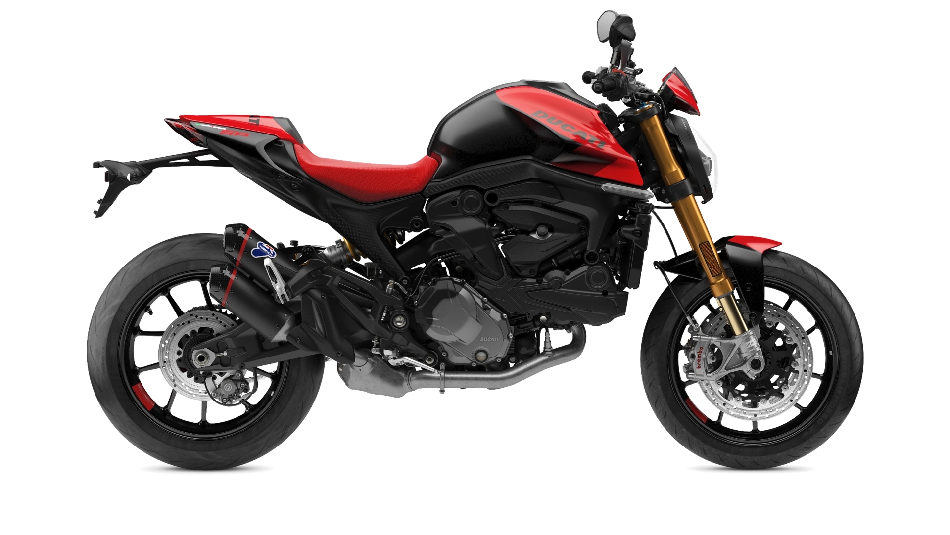 The Monster SP takes the 2022 colors of the official team’s Desmosedici GP, mounts Öhlins suspensions and Termignoni homologated silencer, Brembo Stylema® calipers and Pirelli Diablo Rosso IV tires. True sporty equipment that will make you fall in love with the new Monster SP, available also in depowered version.